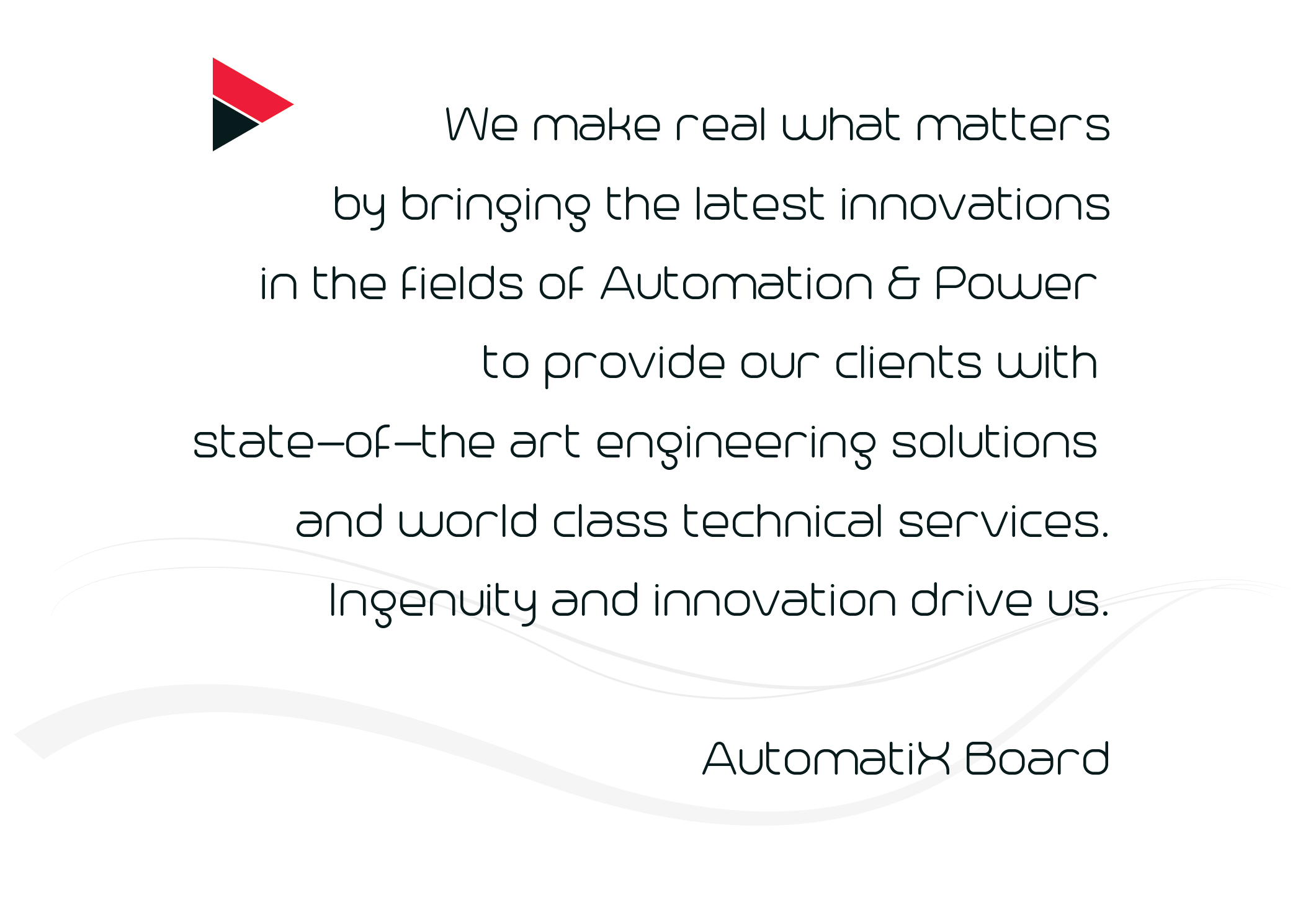 AutomatiX Quality Policy is to provide its clients with state-of-the-art engineering solutions and world class technical services that will meet and exceed customer’s expectations.